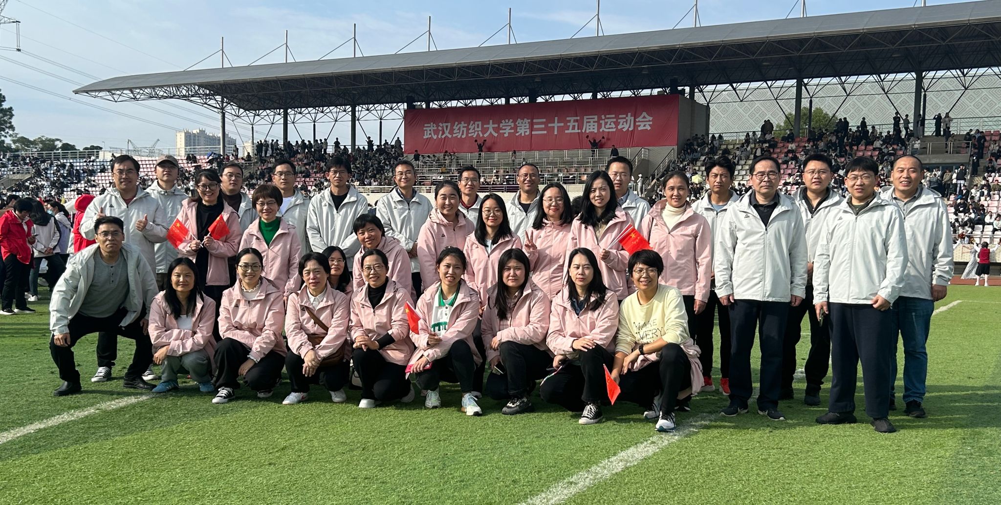 学院工会创新搭建全方位参赛生态:比赛方面,整合体育教研资源,开展差异化体能训练,运用智能设备建立个人运动档案;服务方面,工会委员及志愿者实施“三对一”跟踪服务;积极组织啦啦队,将学院凝聚力转化为精神符号。