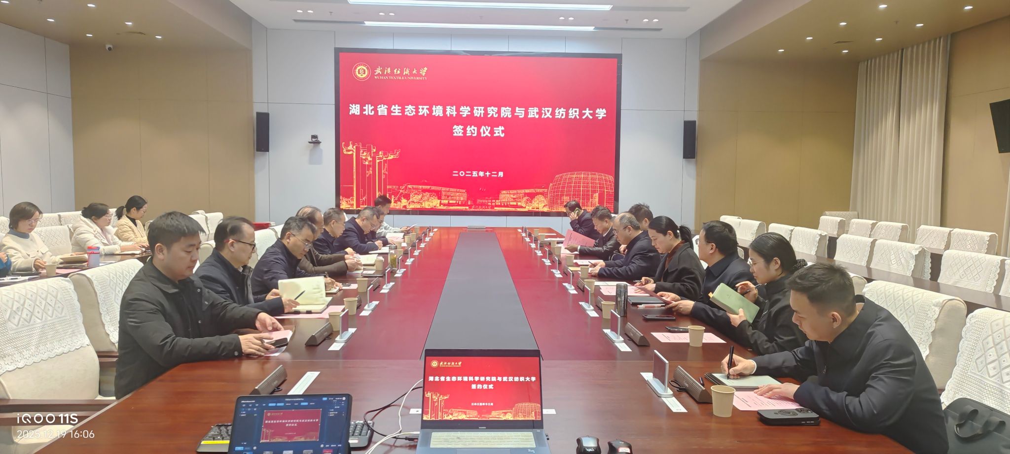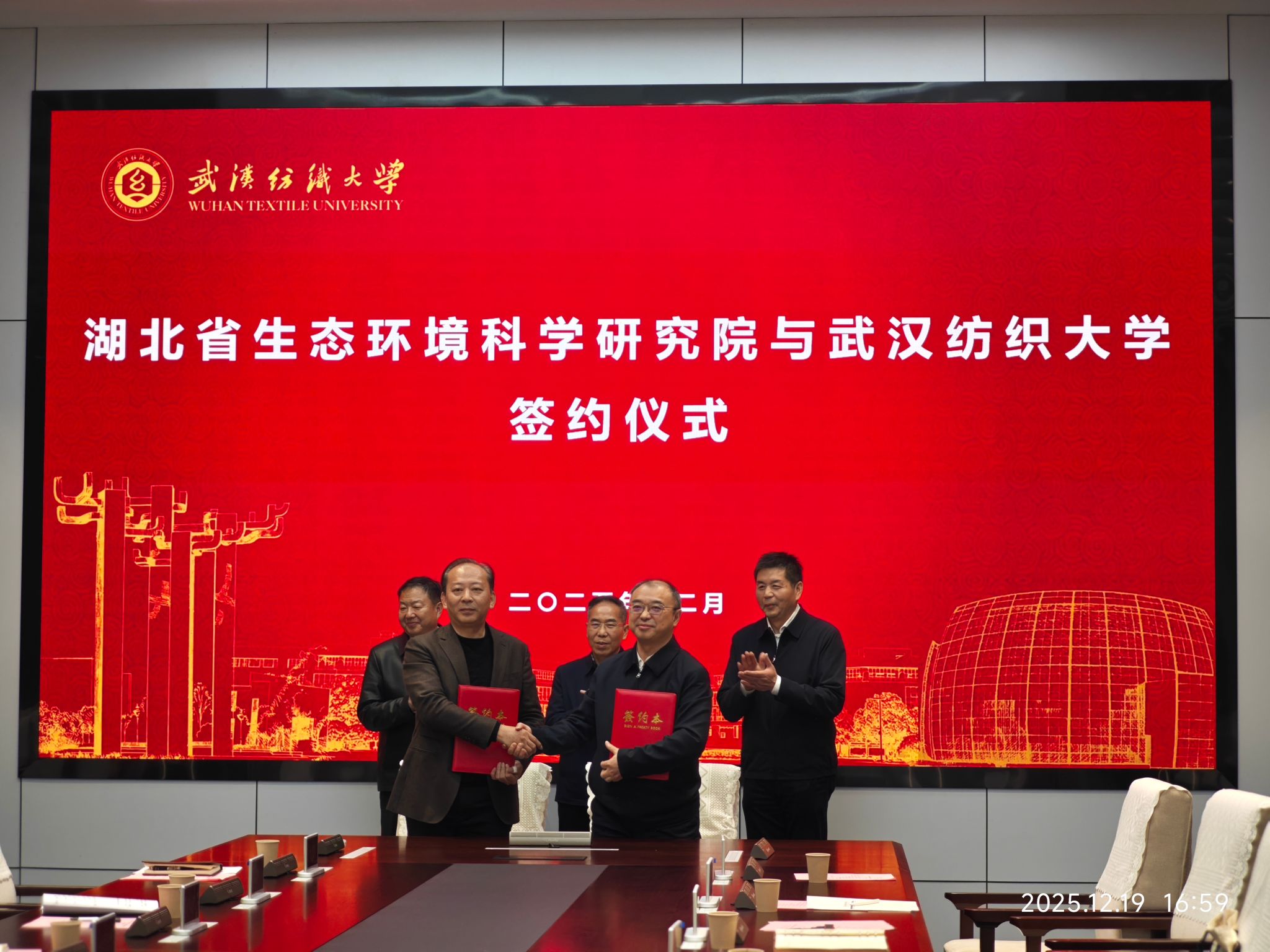 仪式在校宣传片和湖北省环科院宣传片的播放下拉开帷幕。与会人员通过宣传片对两单位与会人员集中观看双方宣传片,全面了解纺大办学底蕴与省环科院生态治理实践成果。