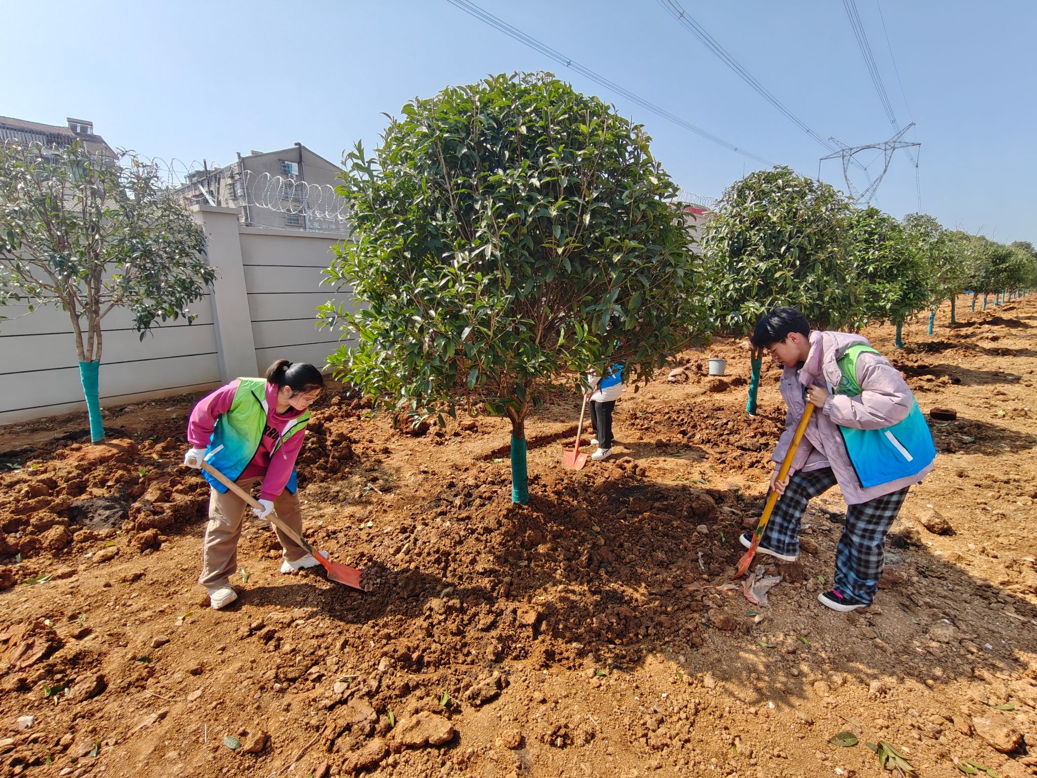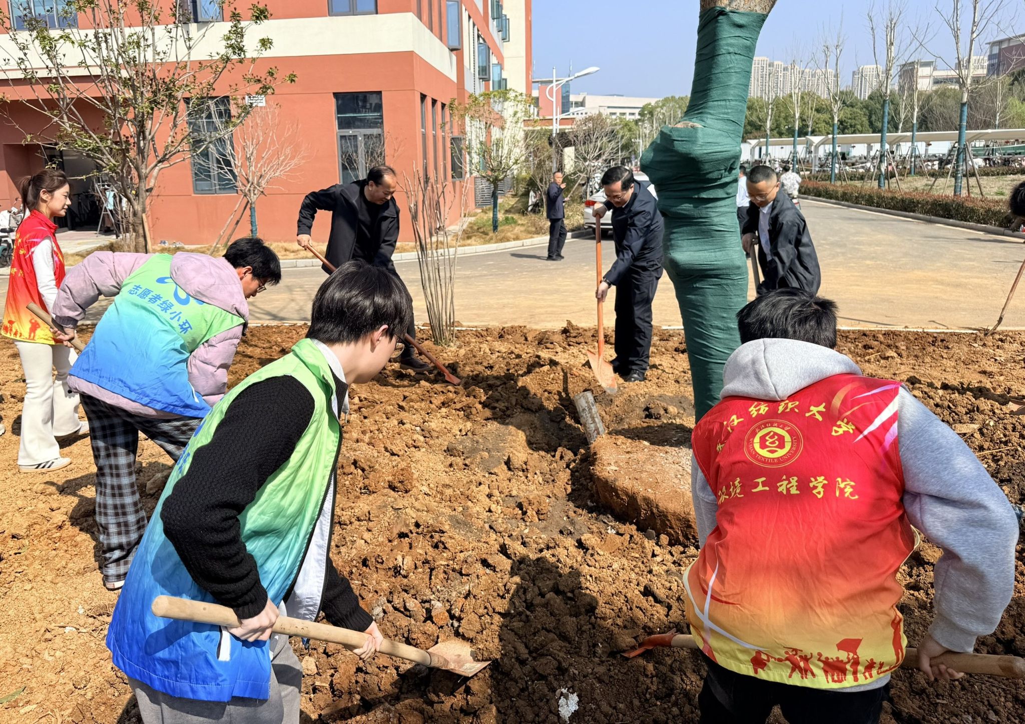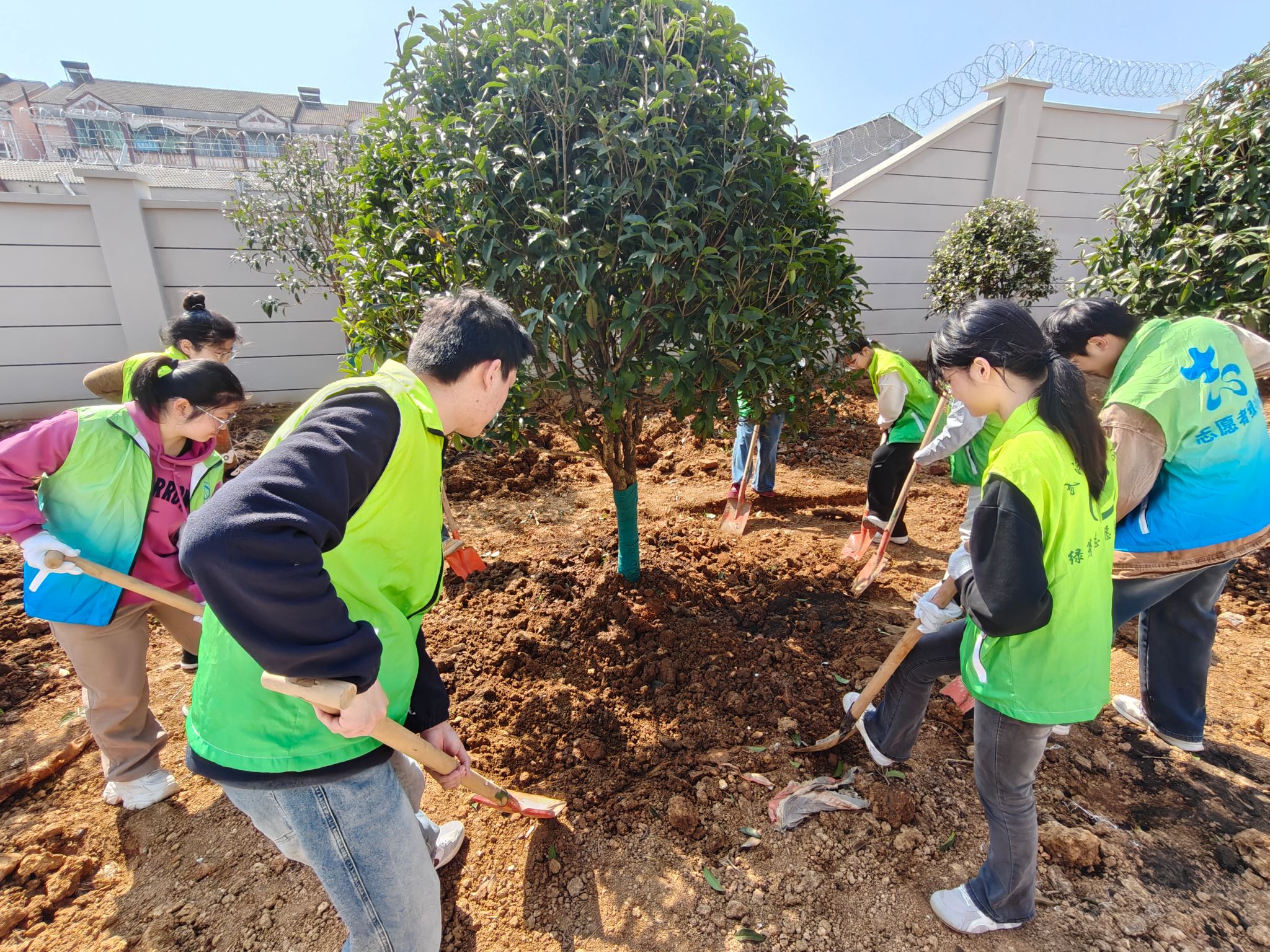志愿者们默契配合夯实土壤筑牢根基,提水浇灌滋养新绿,忙碌身影构成校园里最美的春日风景线。本次活动学校后勤工作人员全程指导,耐心讲解种植技巧与养护要点,帮助大家掌握规范操作方法。一颗颗桃树苗、梅树苗、桂树苗在同学们的辛苦劳动下在校园中焕发生机。在沉浸式的劳动体验中,大家相互协作、挥洒汗水,既感受着植树的乐趣,也在春日劳作中收获了珍贵的集体回忆,用实际行动践行爱绿、护绿、植绿的责任。