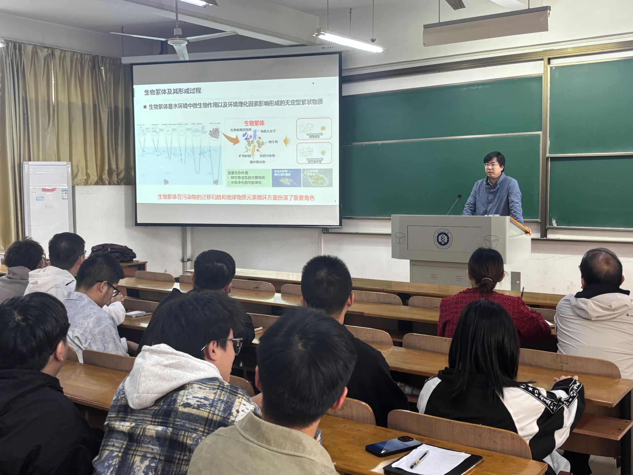 10月24日下午,学院在6号楼111教室举办校第864期阳光论坛。本次论坛邀请华中科技大学付杰教授作了题为“絮体环境生物学与新污染物治理”的报告。论坛由资源与必赢76net线路官网叶宇轩老师主持,学院教师及研究生参与了此次论坛。