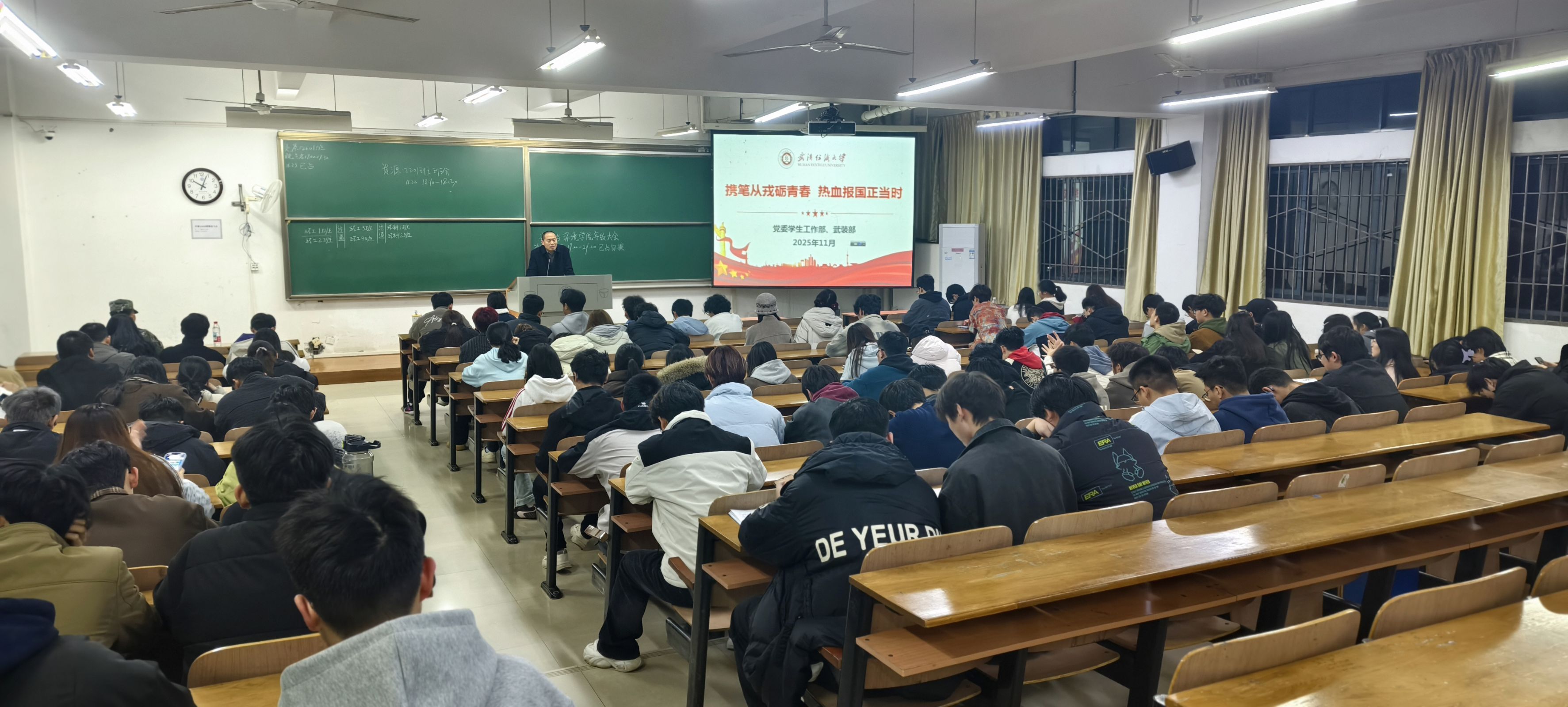 为进一步推动2026年春季征兵工作开展,增进同学们对国家征兵入伍政策的了解,引导青年学子树立“携笔从戎砺青春 热血报国正当时”的远大目标,提升征兵宣传的针对性和有效性;11月21日-11月24日,学院开展主题教育班会、入伍政策宣讲课、退役学生士兵朋辈交流系列活动,扎实推进开展征兵“三个一”宣传工作。